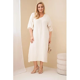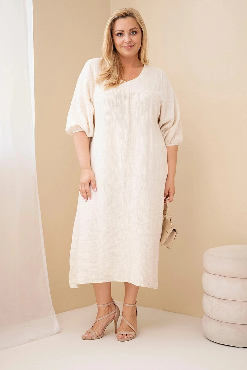 Dámské šaty Plus Size z bavlněného mušelínu s výstřihem do V béžová