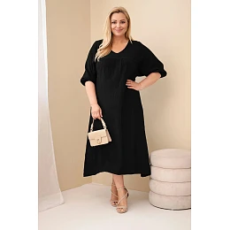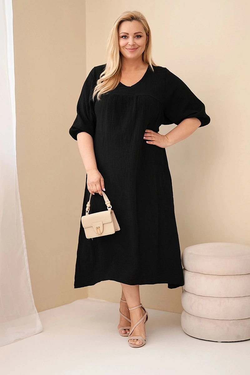 Dámské šaty plus size z bavlněného mušelínu s výstřihem do V černá
