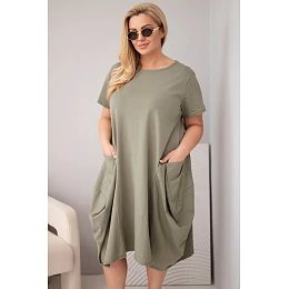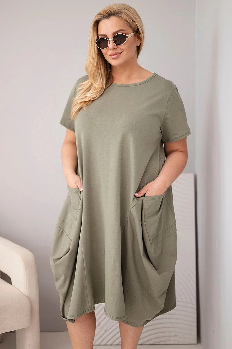 Dámské šaty Plus Size z bavlny s kapsami khaki