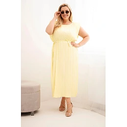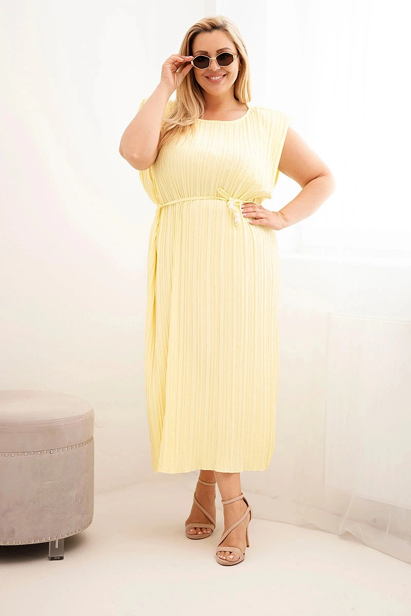 Dámské šaty Plus Size z viskózy, plisované s vázáním žlutá