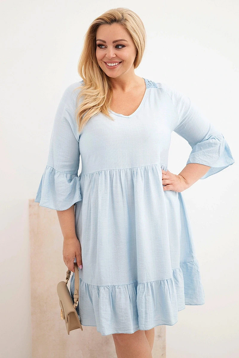 Dámské šaty Plus Size z viskózy s ažurovým zdobením modrá