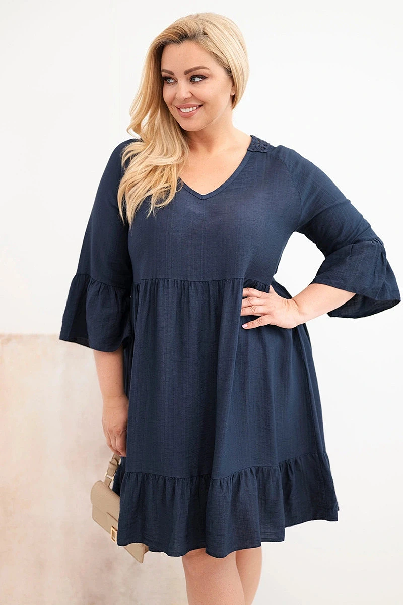 Dámské šaty Plus Size z viskózy s ažurovým zdobením tmavě modrá