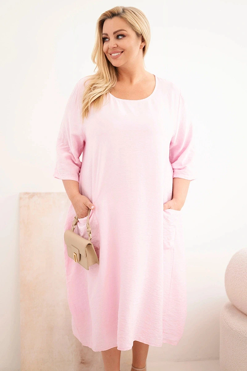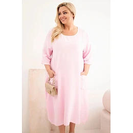 Dámské šaty Plus Size z viskózy s kapsami a krátkým rukávem bonbónově růžová