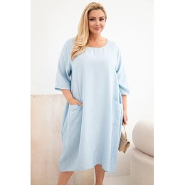Dámské šaty Plus Size z viskózy s kapsami krátký rukáv modrá