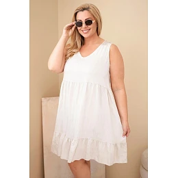 Dámské šaty Plus Size z viskózy s krajkou bez rukávů béžová