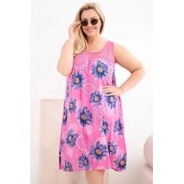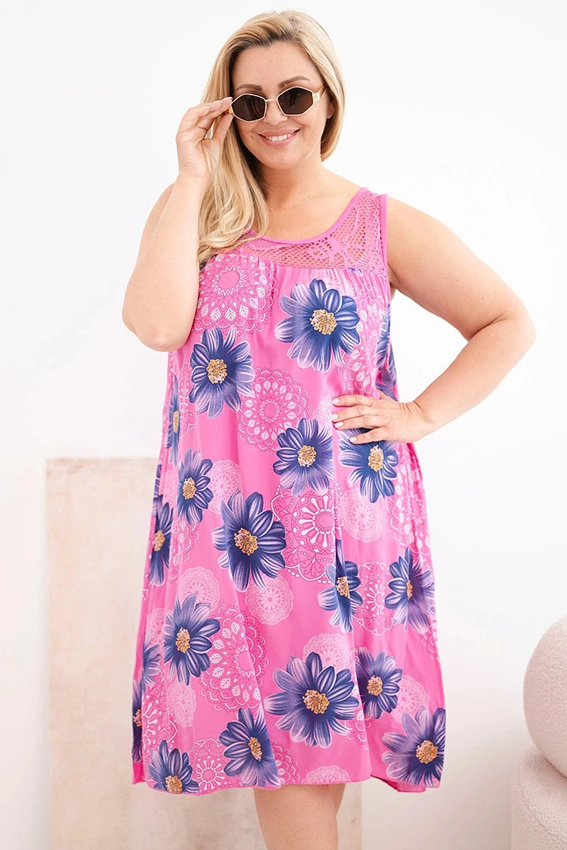 Dámské šaty Plus Size z viskózy s květinami s krajkovým výstřihem růžová