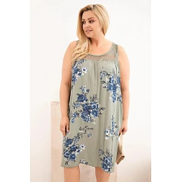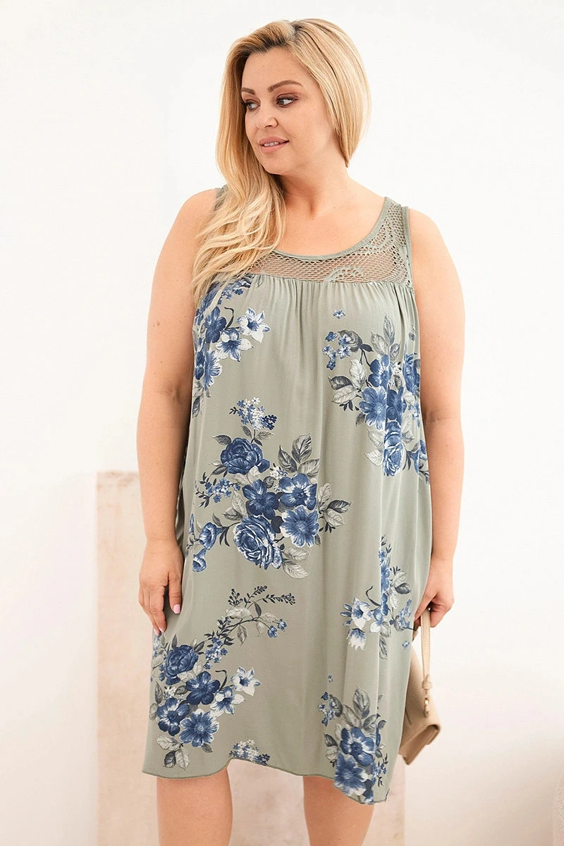Dámské šaty Plus Size z viskózy s květinovým vzorem a krajkovým vrškem khaki