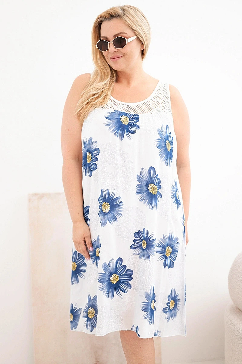 Dámské šaty Plus Size z viskózy s květinovým vzorem a krajkovým výstřihem bílé