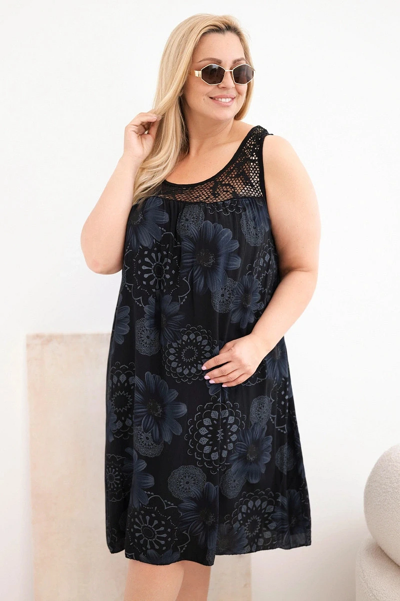 Dámské šaty Plus Size z viskózy s květinovým vzorem a krajkovým výstřihem černá