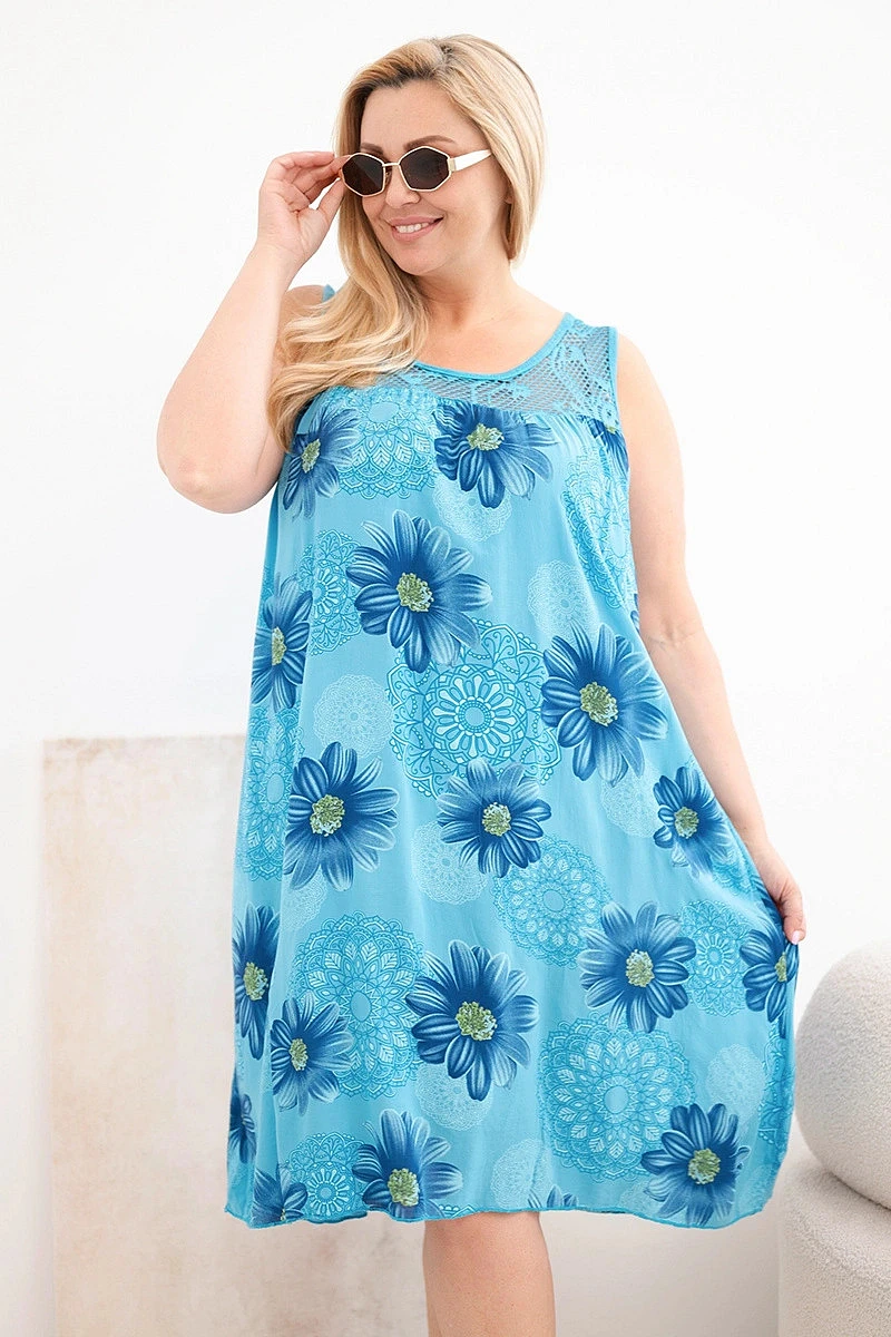 Dámské šaty Plus Size z viskózy s květinovým vzorem a krajkovým výstřihem tyrkysová