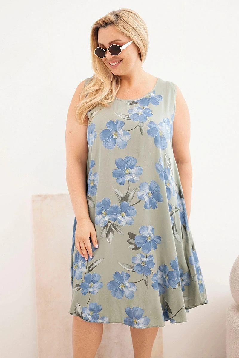 Dámské šaty plus size z viskózy s květinovým vzorem na ramínkách khaki