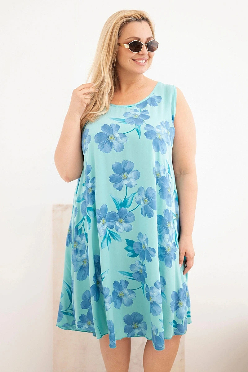 Dámské šaty Plus Size z viskózy s květinovým vzorem na ramínkách mentolová