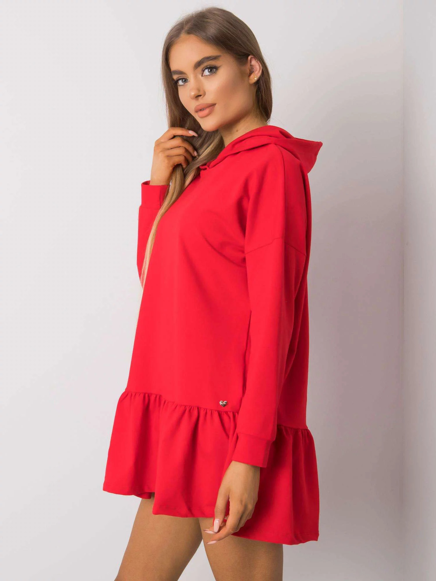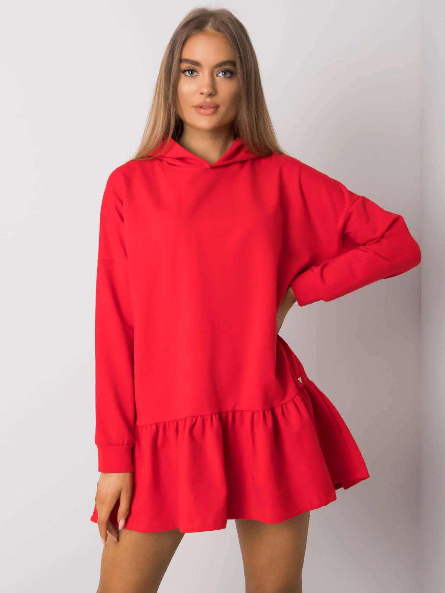 Červené bavlněné šaty s kapucí.