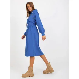 Tmavě modré rozšířené teplákové šaty s knoflíky .