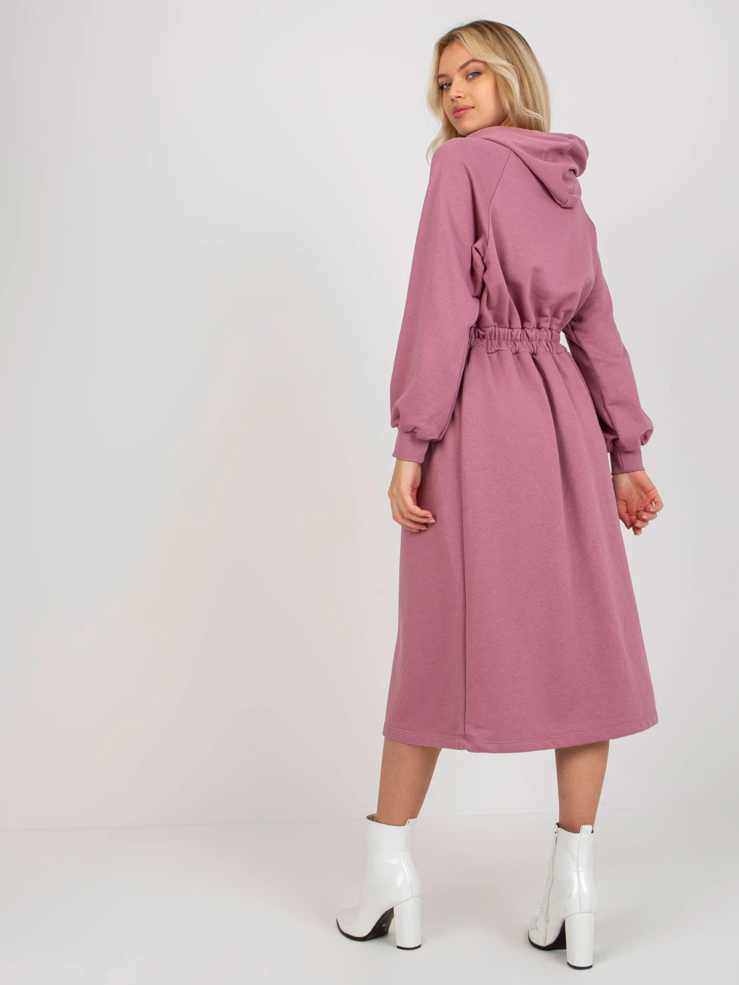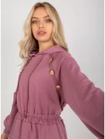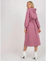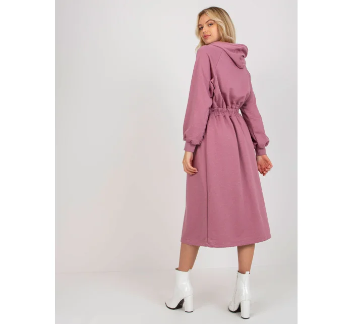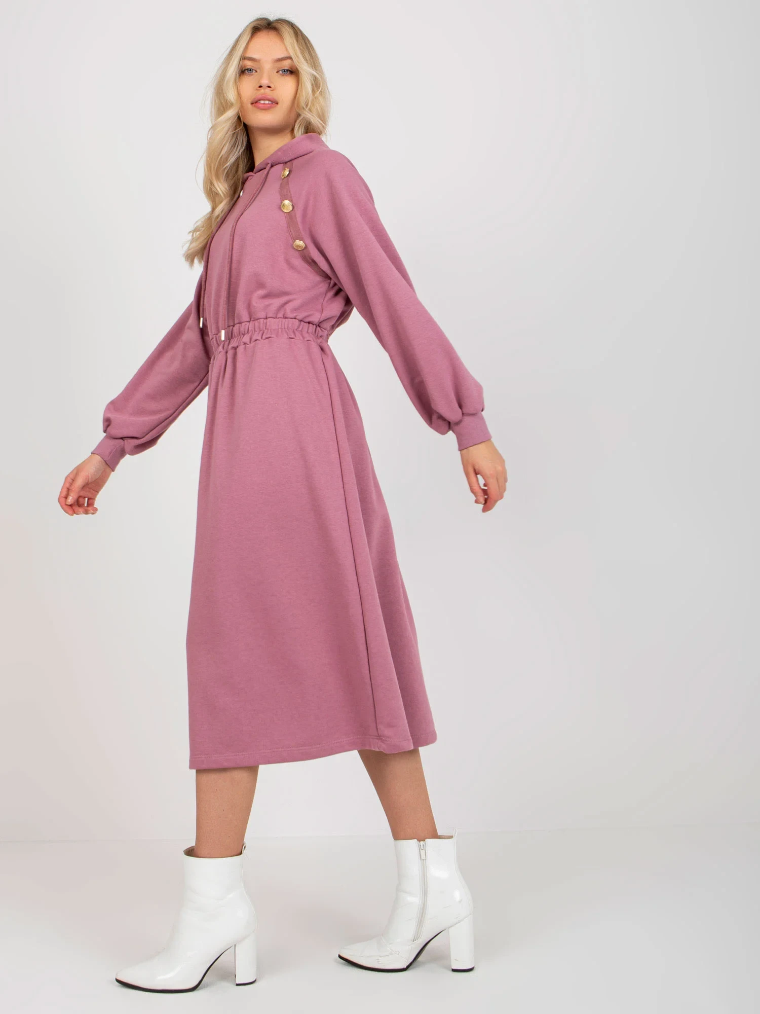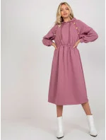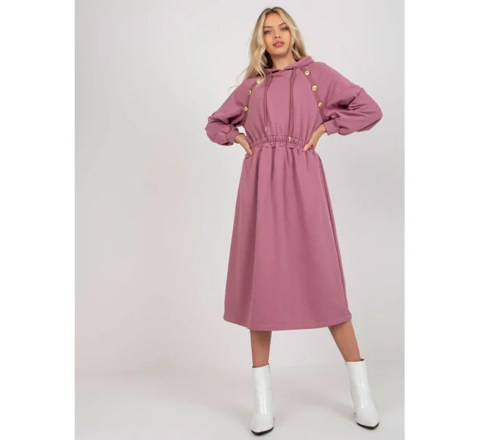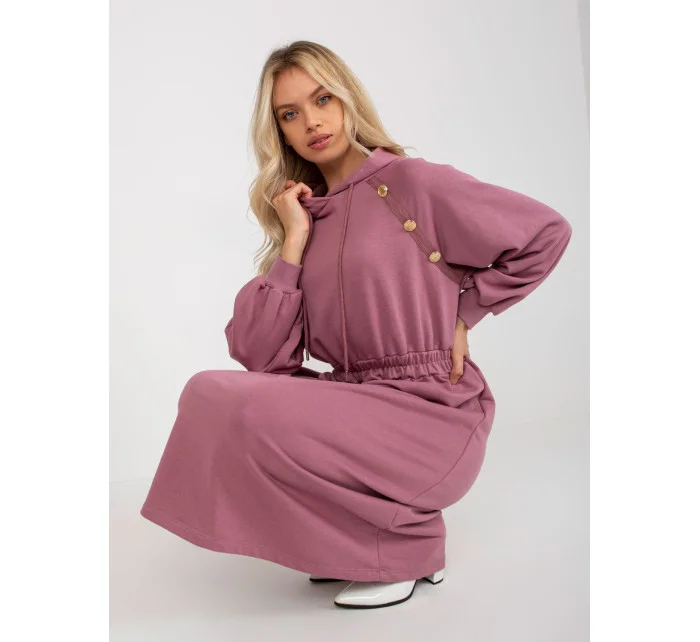 Špinavě růžové rozšířené teplákové šaty s knoflíky .