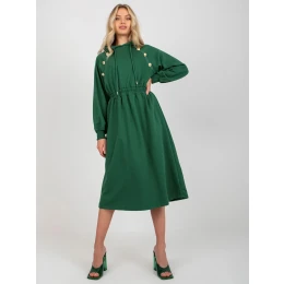 Tmavě zelené rozšířené teplákové šaty s kapucí .