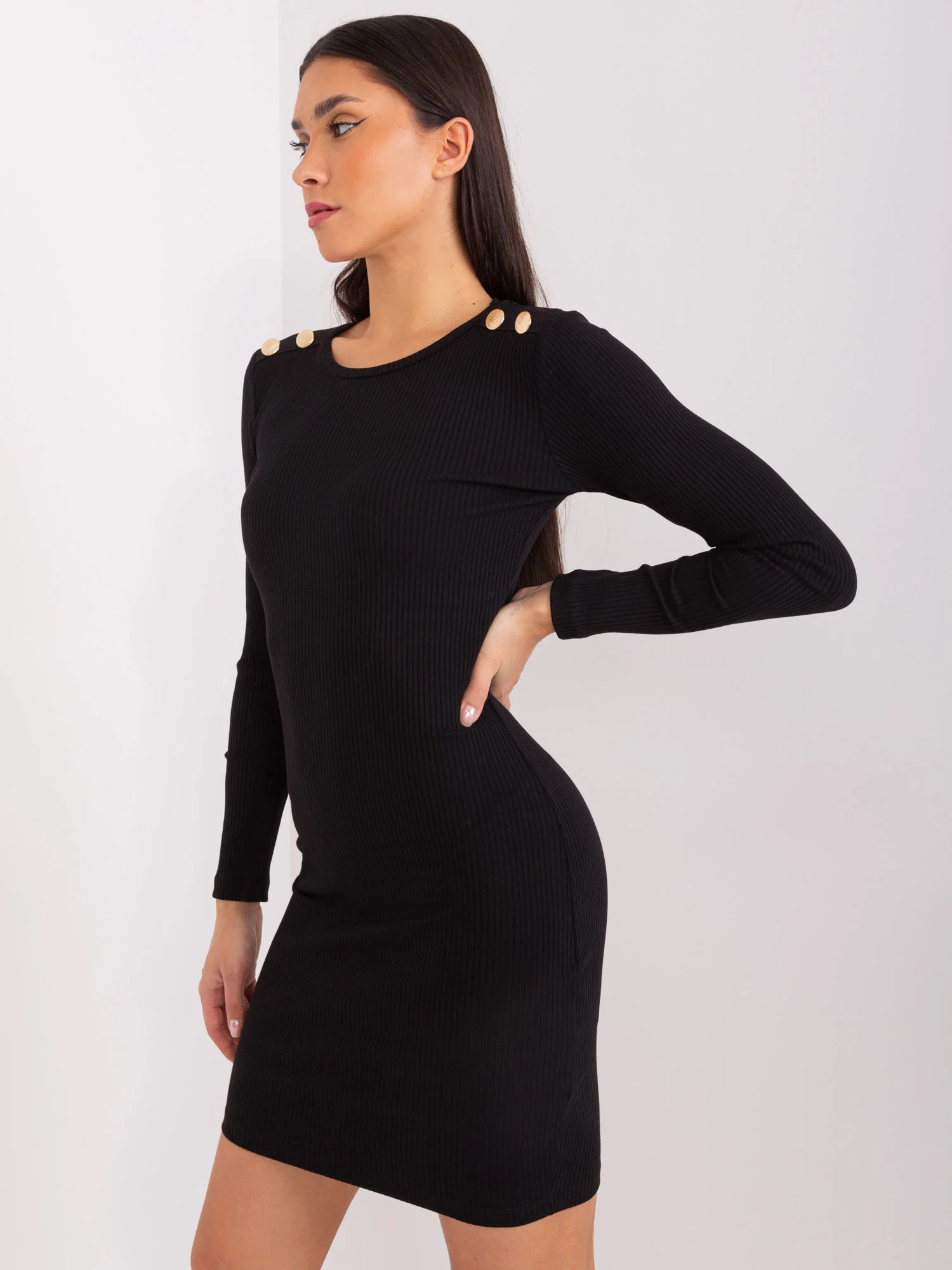 BASIC FEEL GOOD Černé vypasované žebrované šaty .