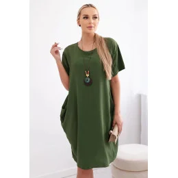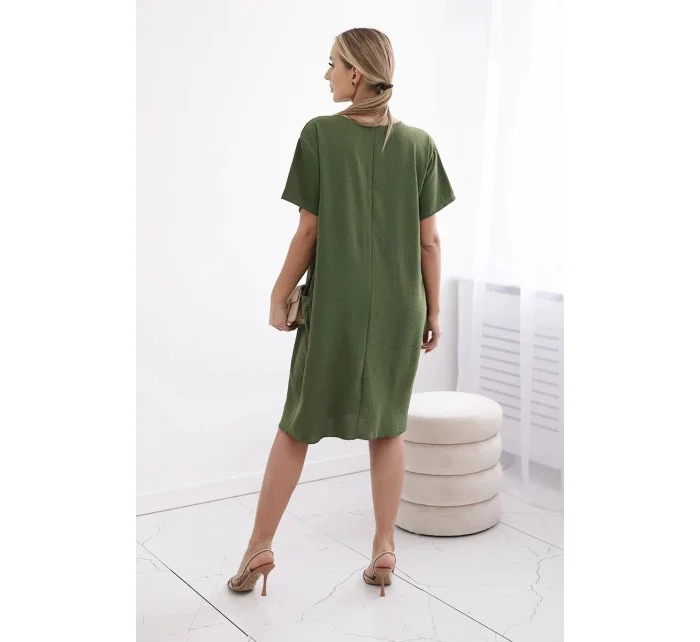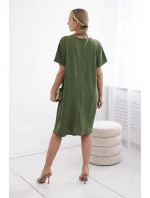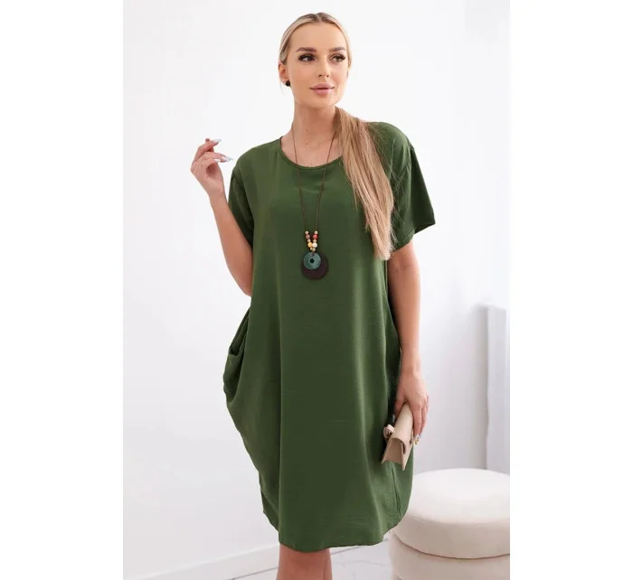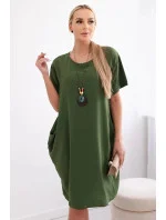 Dámské šaty s kapsami a přívěskem 29473 světlá khaki - Kesi