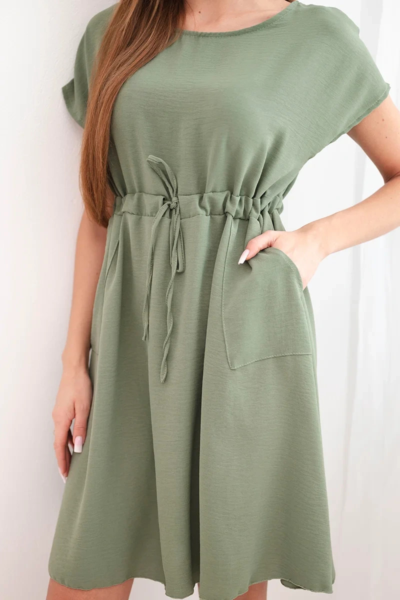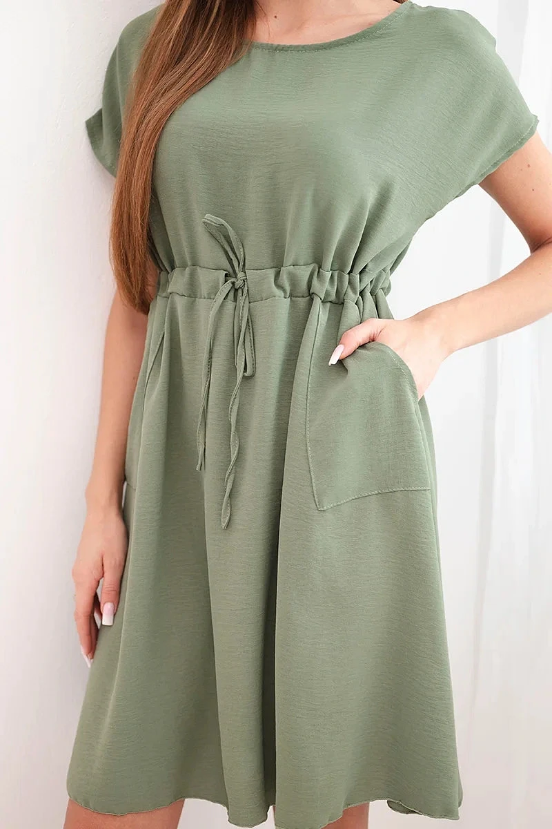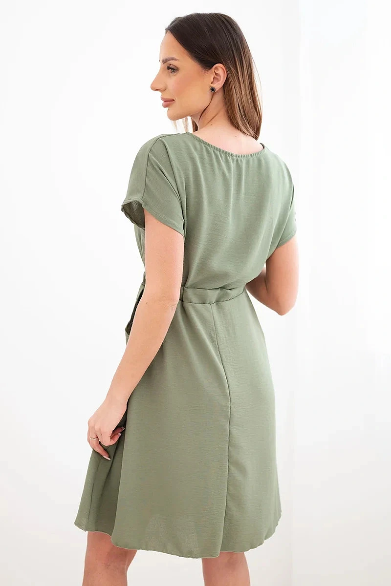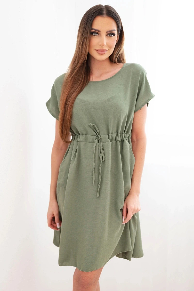 Dámské šaty s krátkým rukávem a vázáním v pase khaki