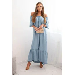 Přidání recenze k Dámské šaty s krátkým rukávem a volánky světlý denim