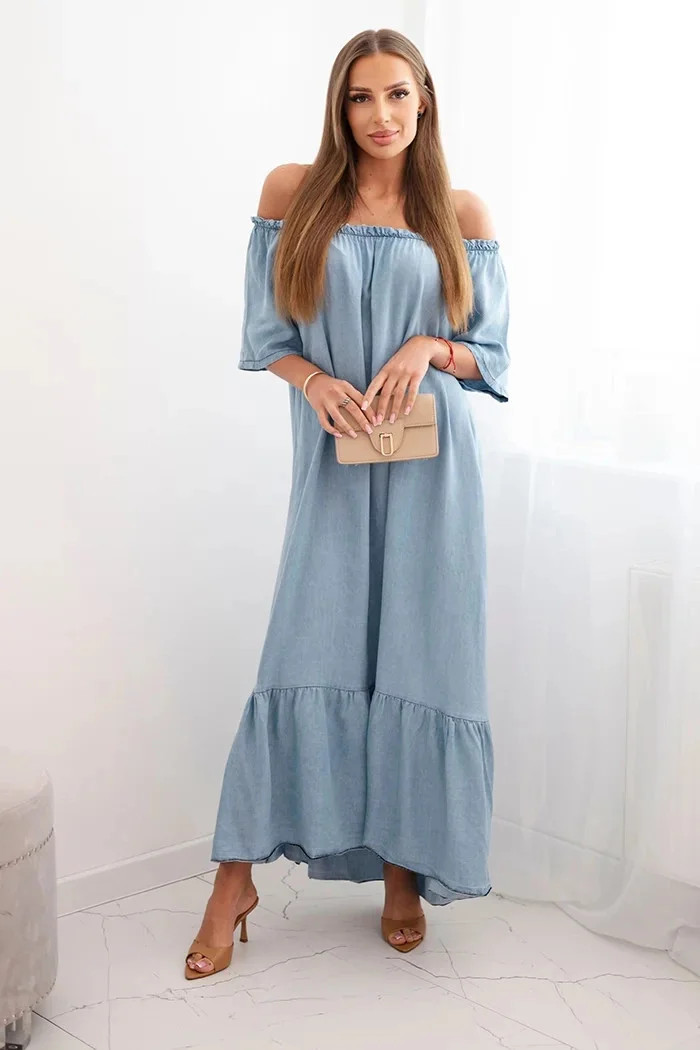 Přidání recenze k Dámské šaty s krátkým rukávem a volánky světlý denim