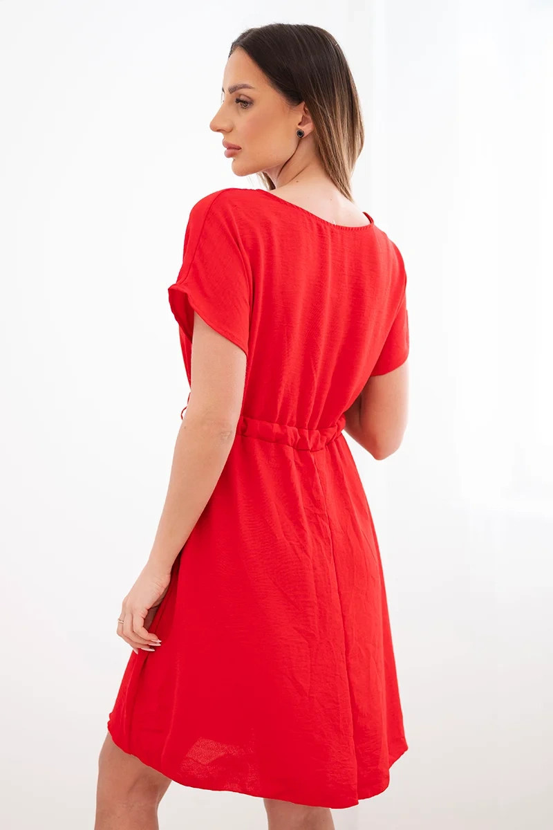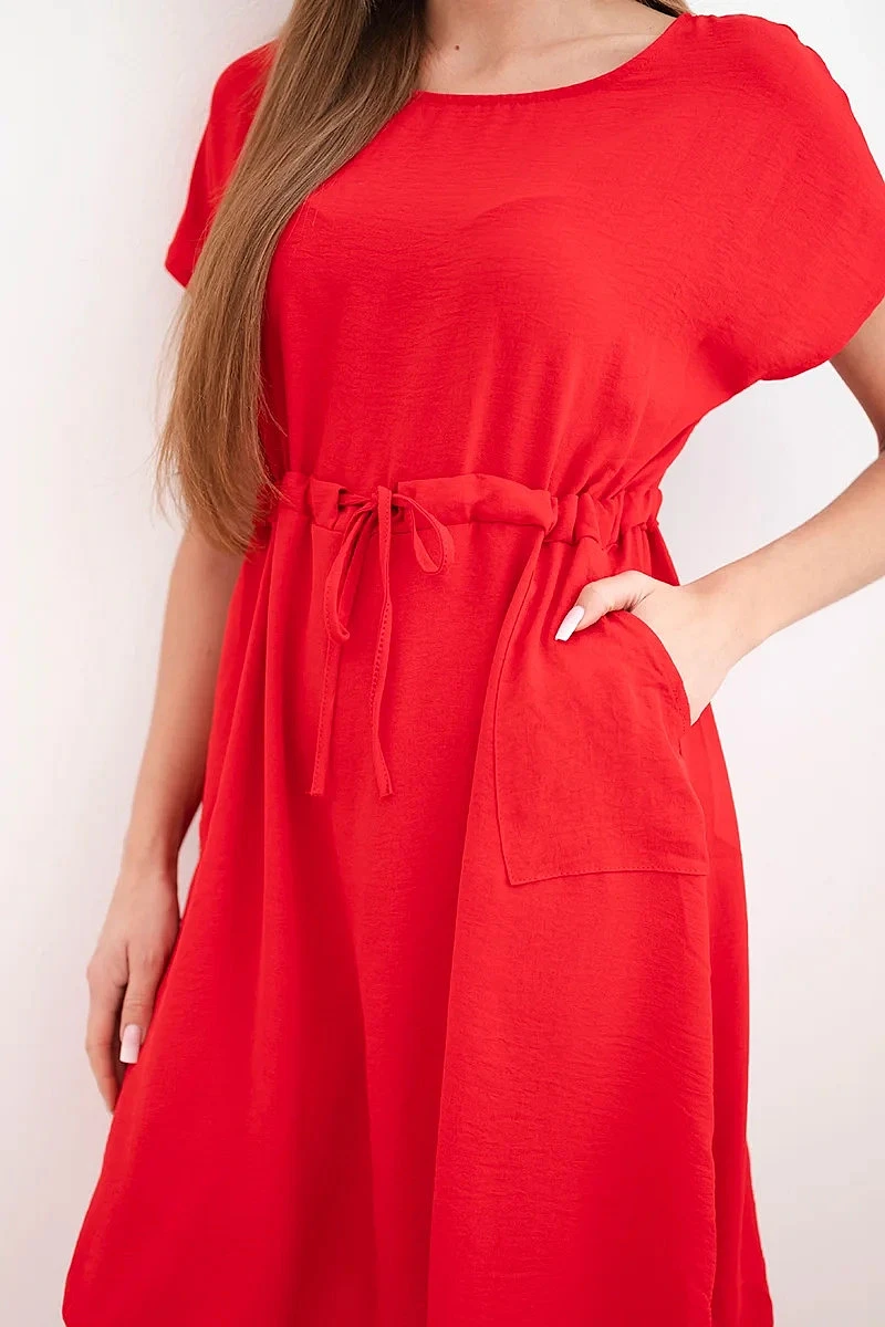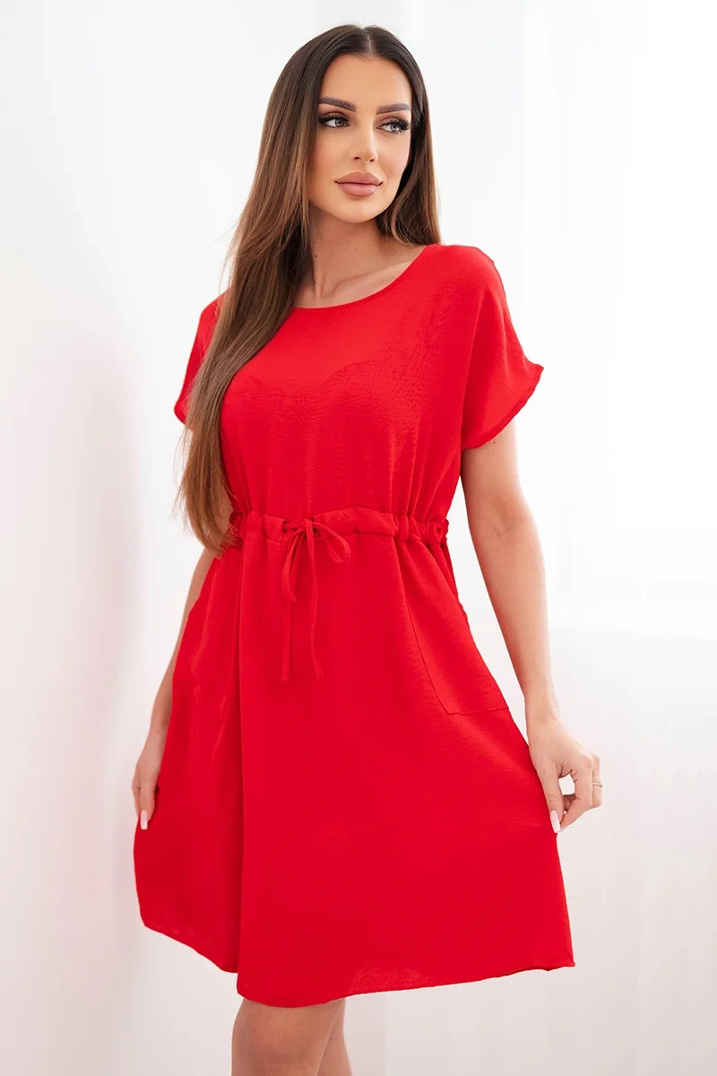 Dámské šaty s krátkým rukávem a zavazováním v pase červené