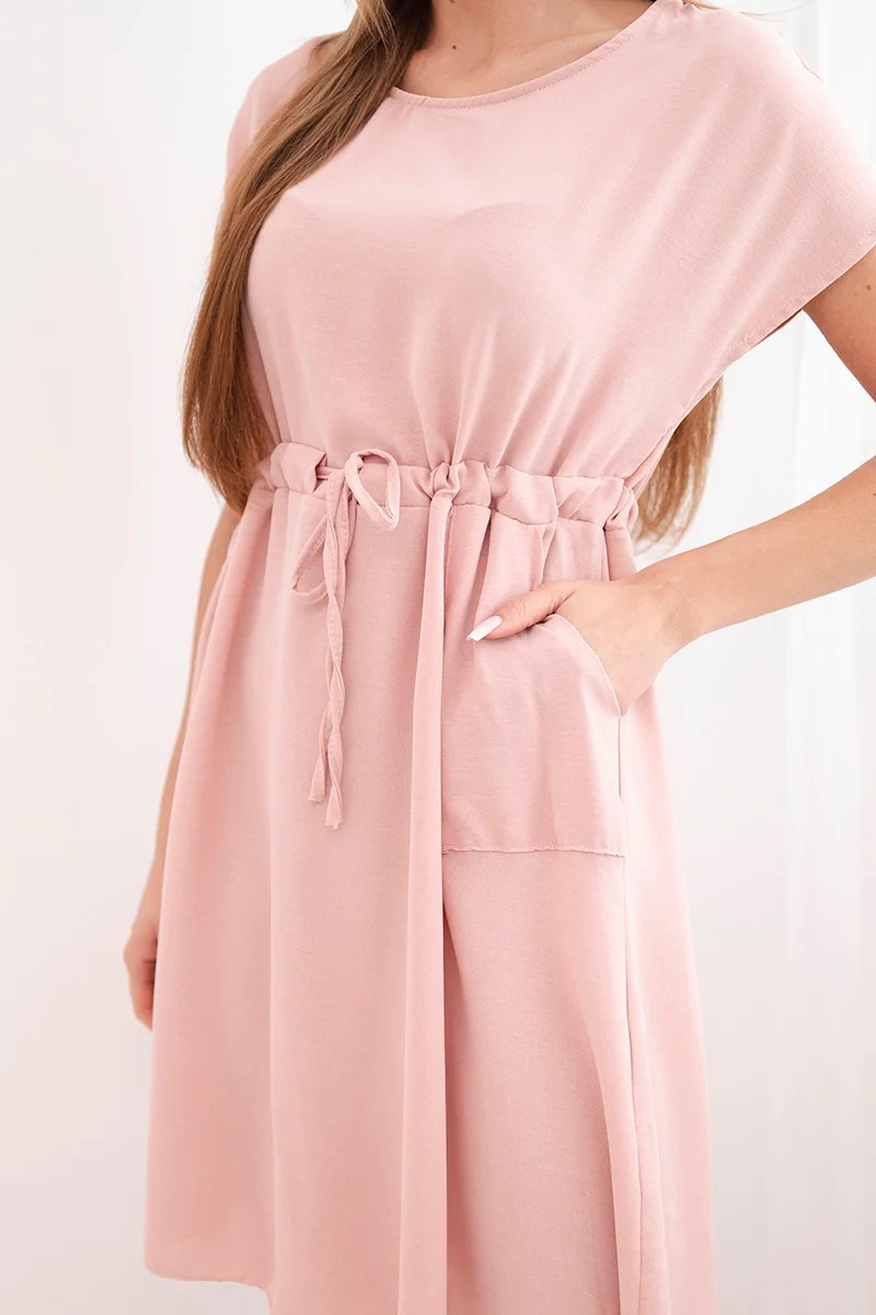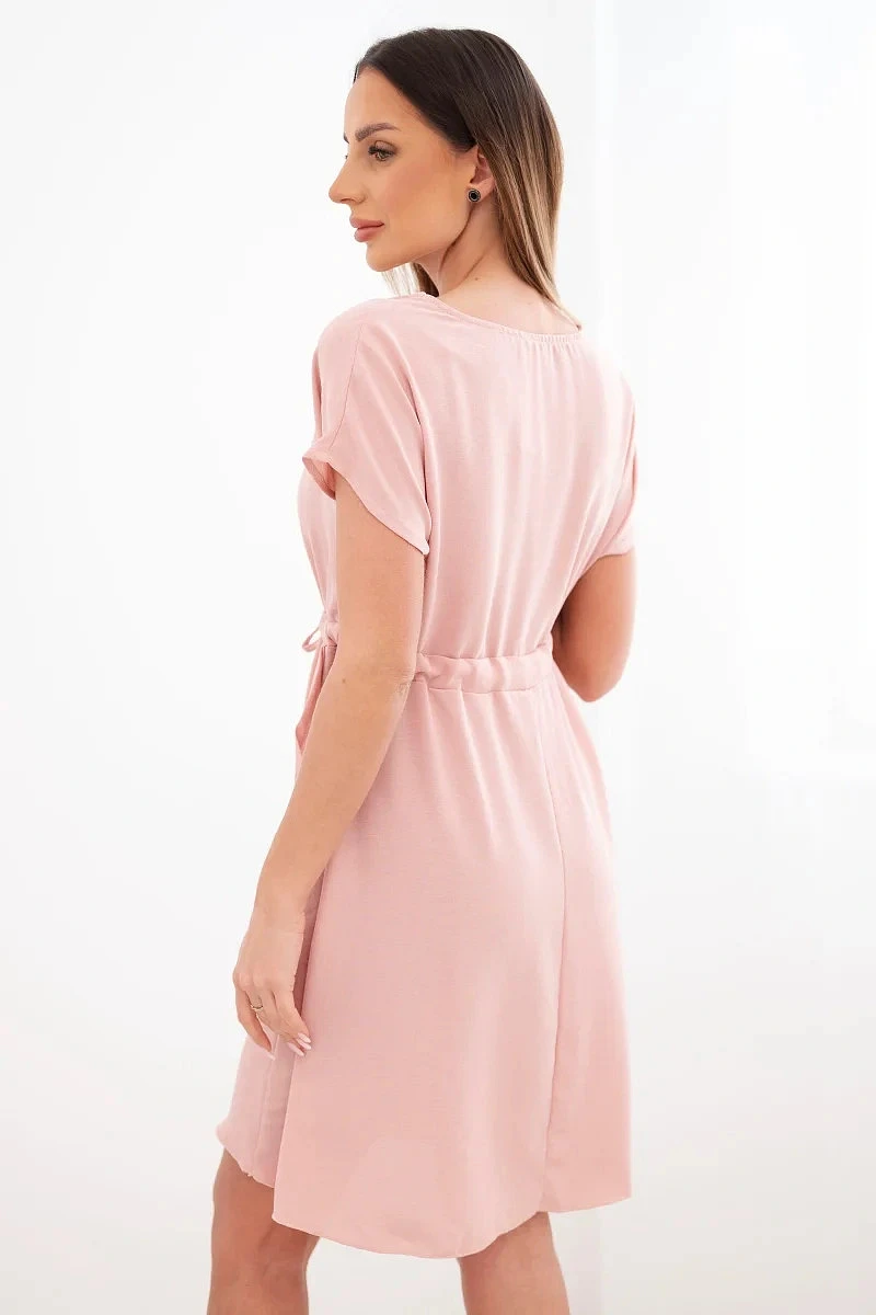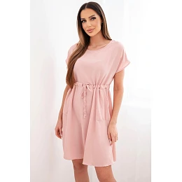 Dámské šaty s krátkým rukávem a zavazováním v pase tmavě pudrově růžové