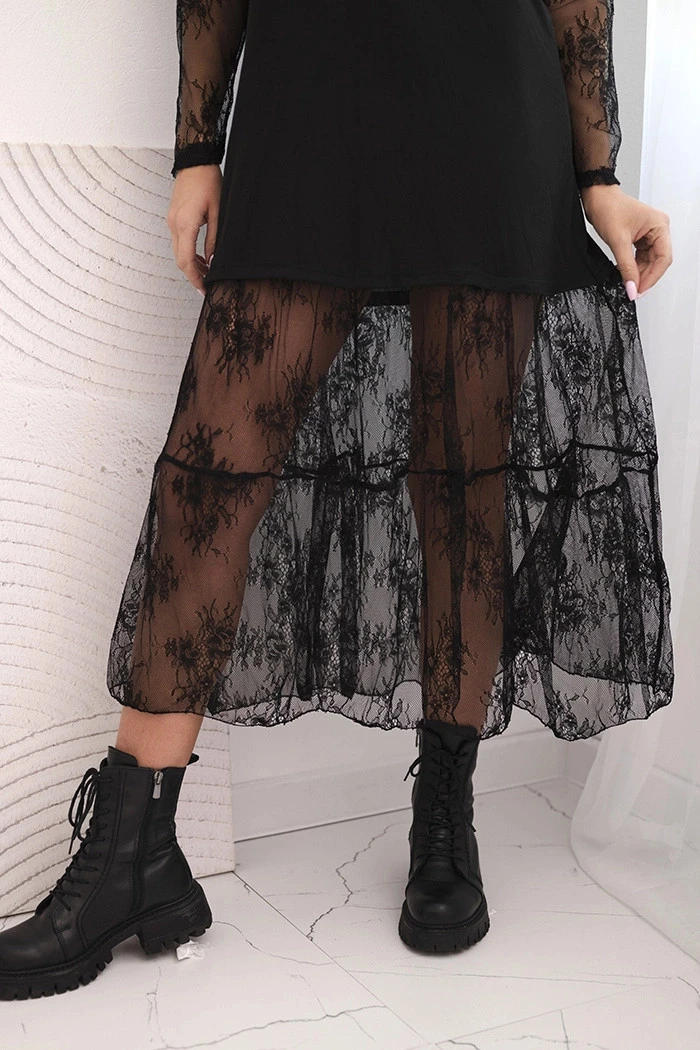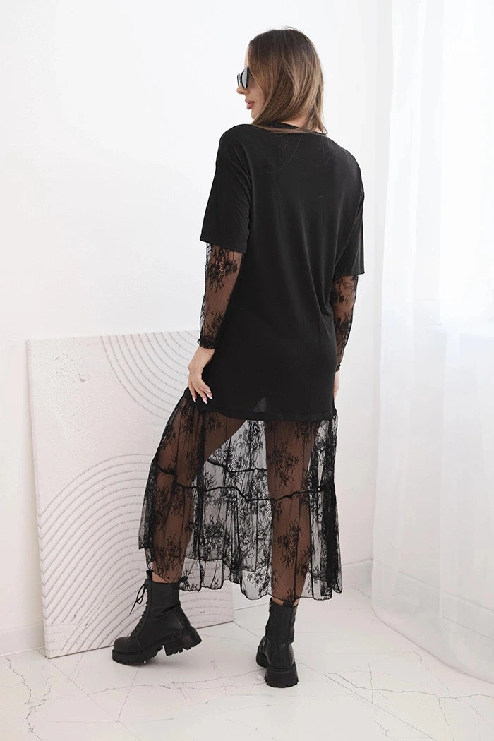 Tento dámský šaty s tylovým spodkem a rukávy jsou ideální volbou pro ženy, které se rády odlišují stylovým a zároveň pohodlným oblečením. Vrchní část je vyrobena z měkkého modalového materiálu, který zajišťuje pohodlí při nošení, a lehce oversize střih zaručuje volnost pohybu. Naopak lehce průhledný tylový spodek a rukávy dodávají celku lehkost a módní, ženský charakter.