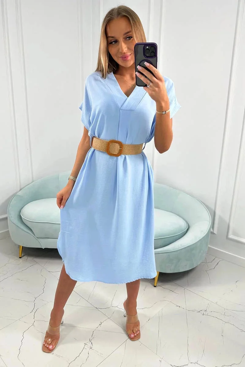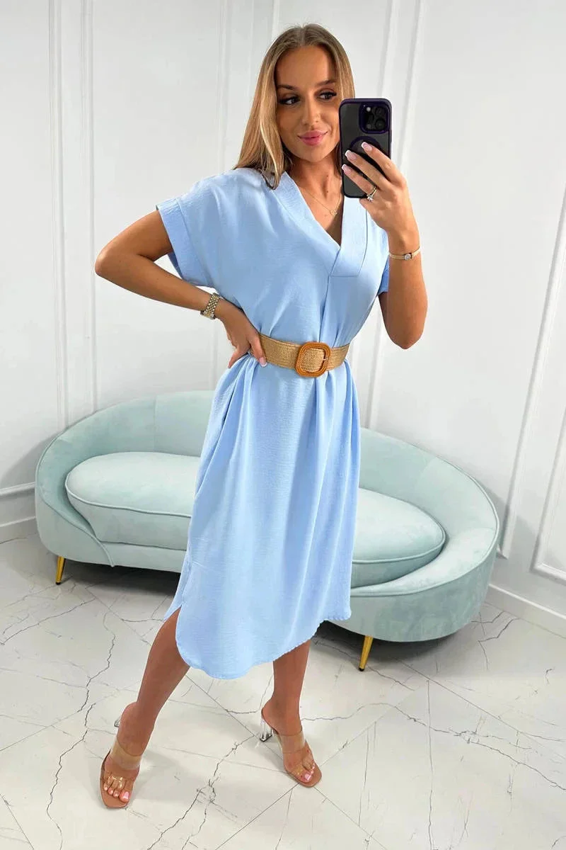 Dámské šaty s ozdobným páskem 24139 sv. modré - Kesi