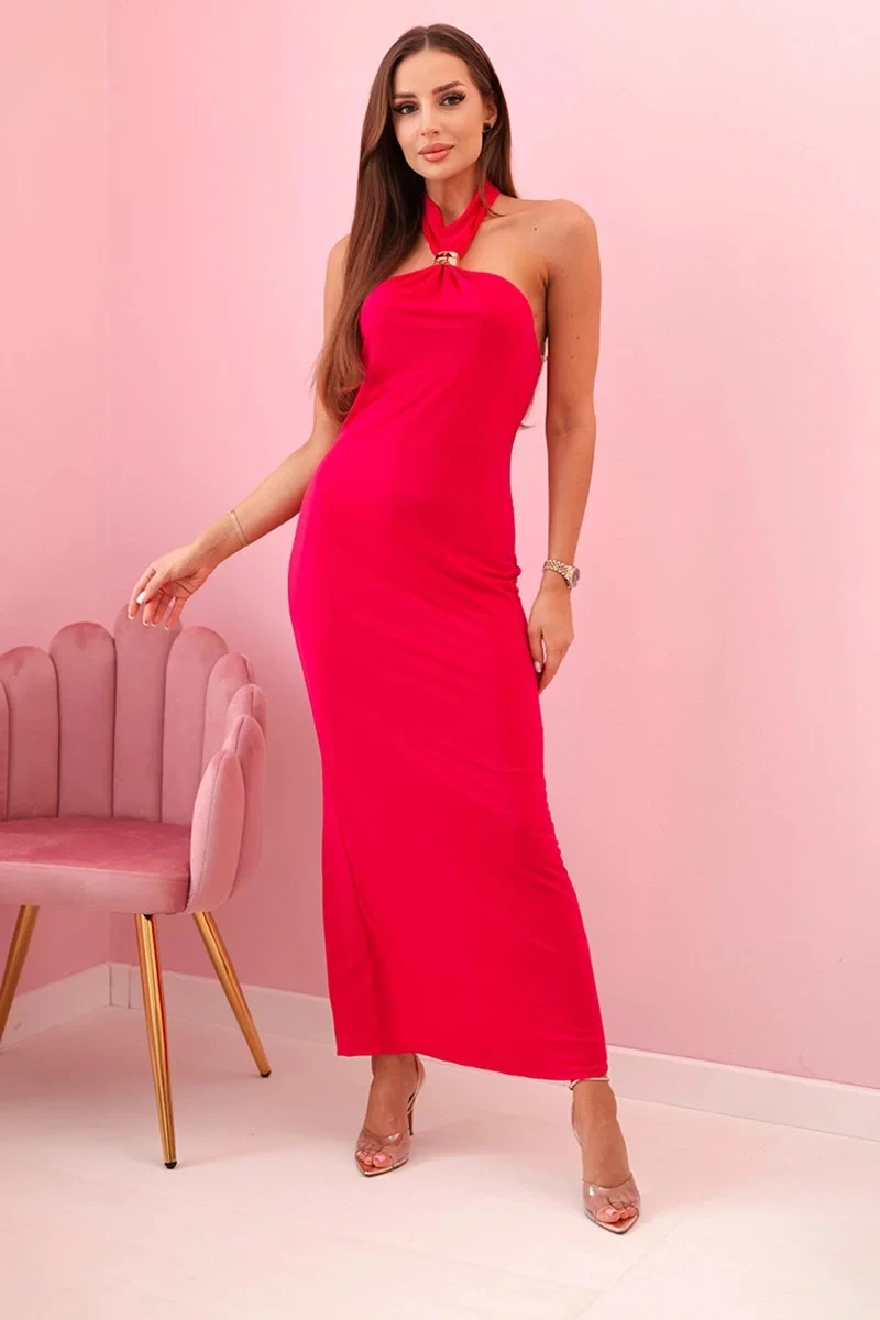 Smyslné dámské maxi šaty s odhalenými zády a efektním řasením vpředu jsou ideální volbou pro výjimečné příležitosti. Model je vyroben z elastického, splývavého materiálu, který krásně padne na postavu a zdůrazňuje ženské křivky. Horní část na tenkých ramínkách se širokým páskem kolem krku vytváří stylový a poutavý střih. Šaty jsou ideální na svatby, rande, elegantní večeře nebo letní párty pod širým nebem.