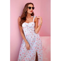 Romantické dámské šaty v módním vzoru jsou ideální volbou na teplé dny. Model se širokými ramínky a roztomilým zavazováním na ramenou podtrhuje ženský šarm a dodává lehkost stylizaci. Přiléhavý vršek s řasením krásně zvýrazňuje poprsí, zatímco lehce rozšířená sukně zajišťuje volnost pohybu. Lehký a vzdušný materiál činí šaty mimořádně pohodlnými na nošení, a jejich midi délka je perfektní jak na běžné nošení, tak i na speciální příležitosti. Velikost je univerzální a bude vhodná pro ženy nosící velikost S, M nebo L.