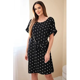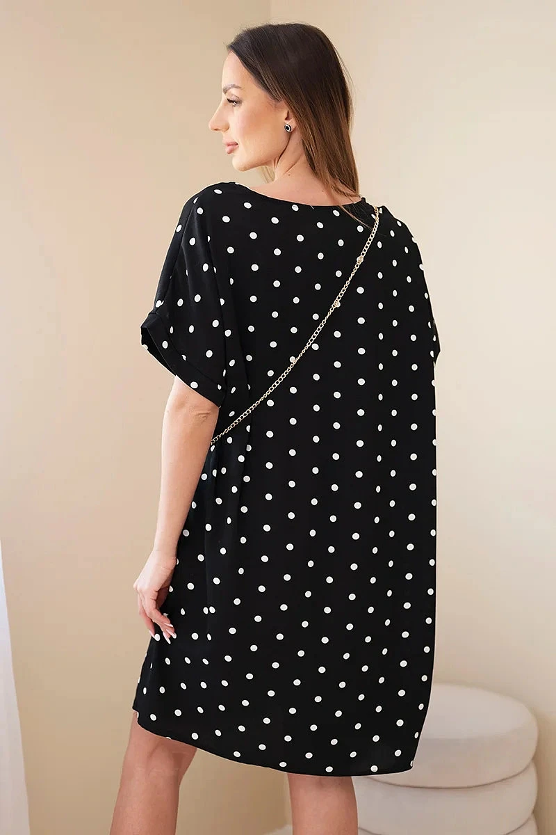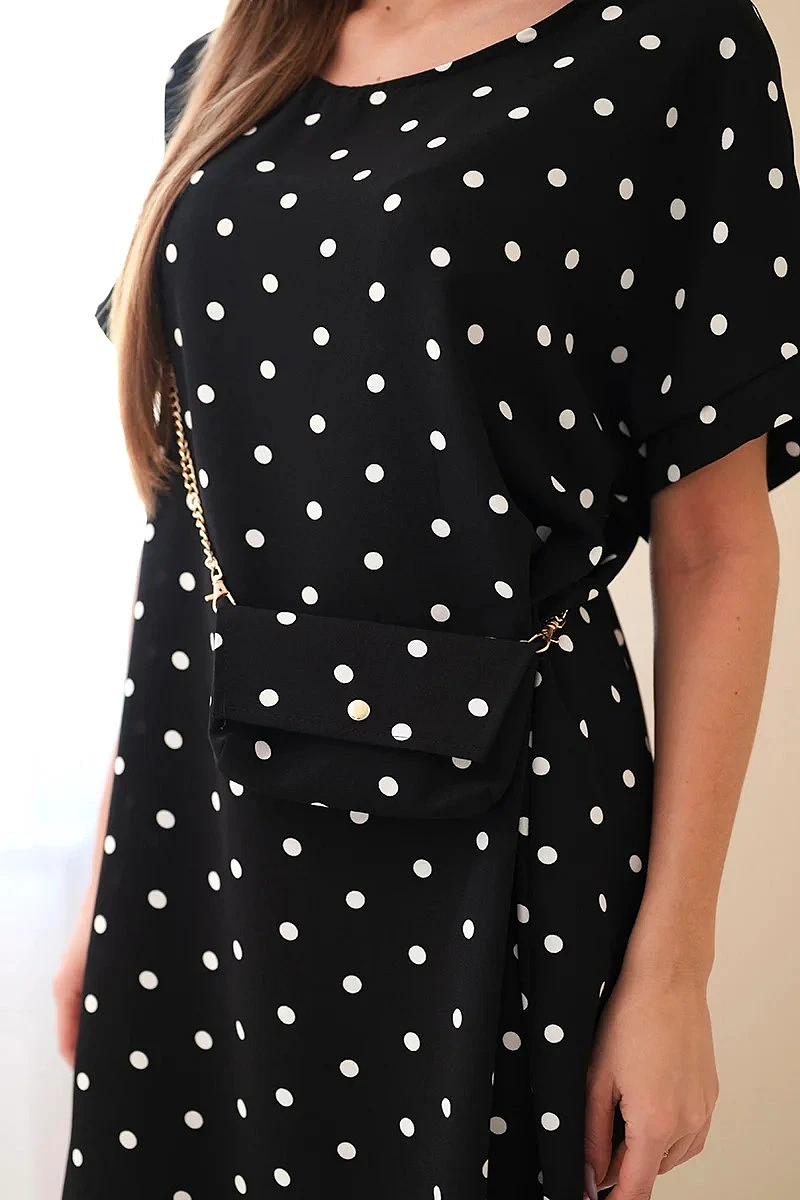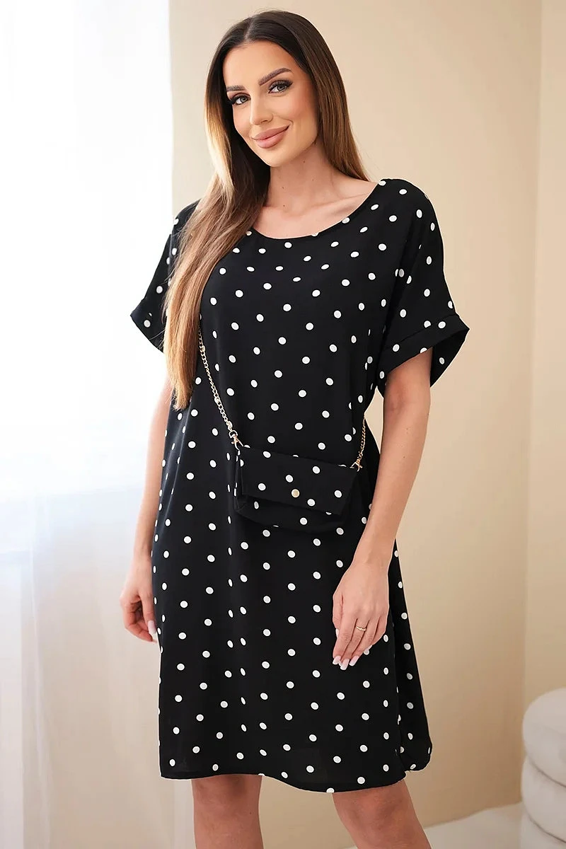Dámské šaty s puntíky s krátkým rukávem a kabelkou černá