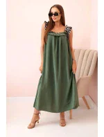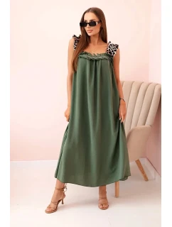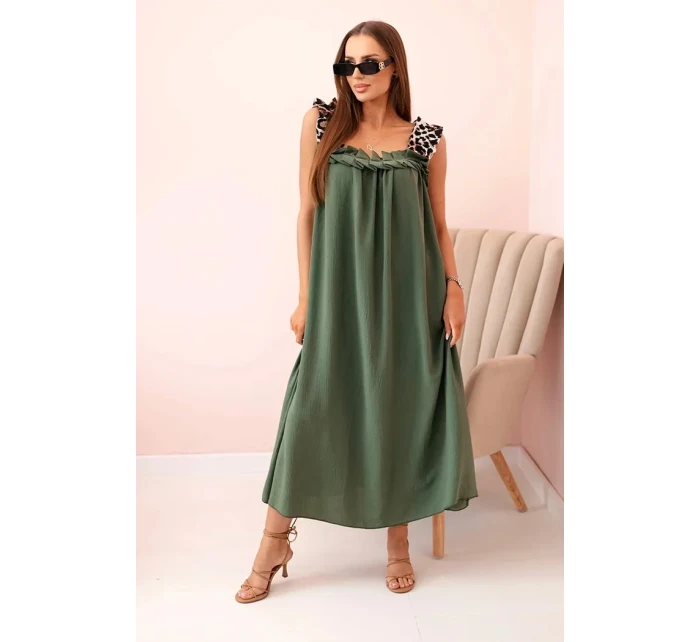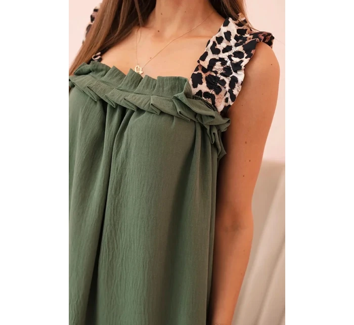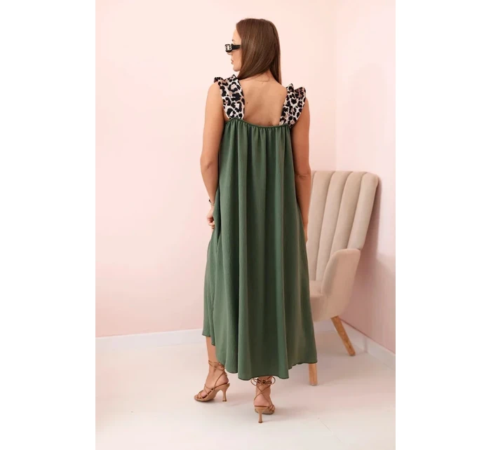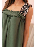 Dámské šaty s ramínky s leopardím potiskem khaki