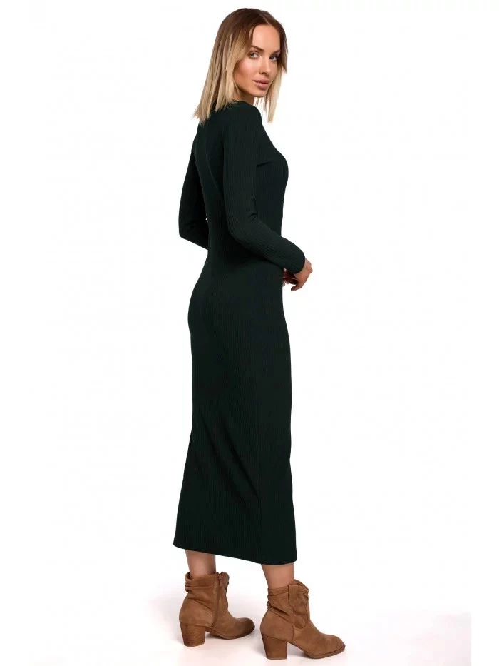 Produkt Dámské šaty s rozparkem na boku M544 Tmavě zelená - MOE prodáváme v těchto velikostech: XXLa barvách tmavě zelená1210004594194