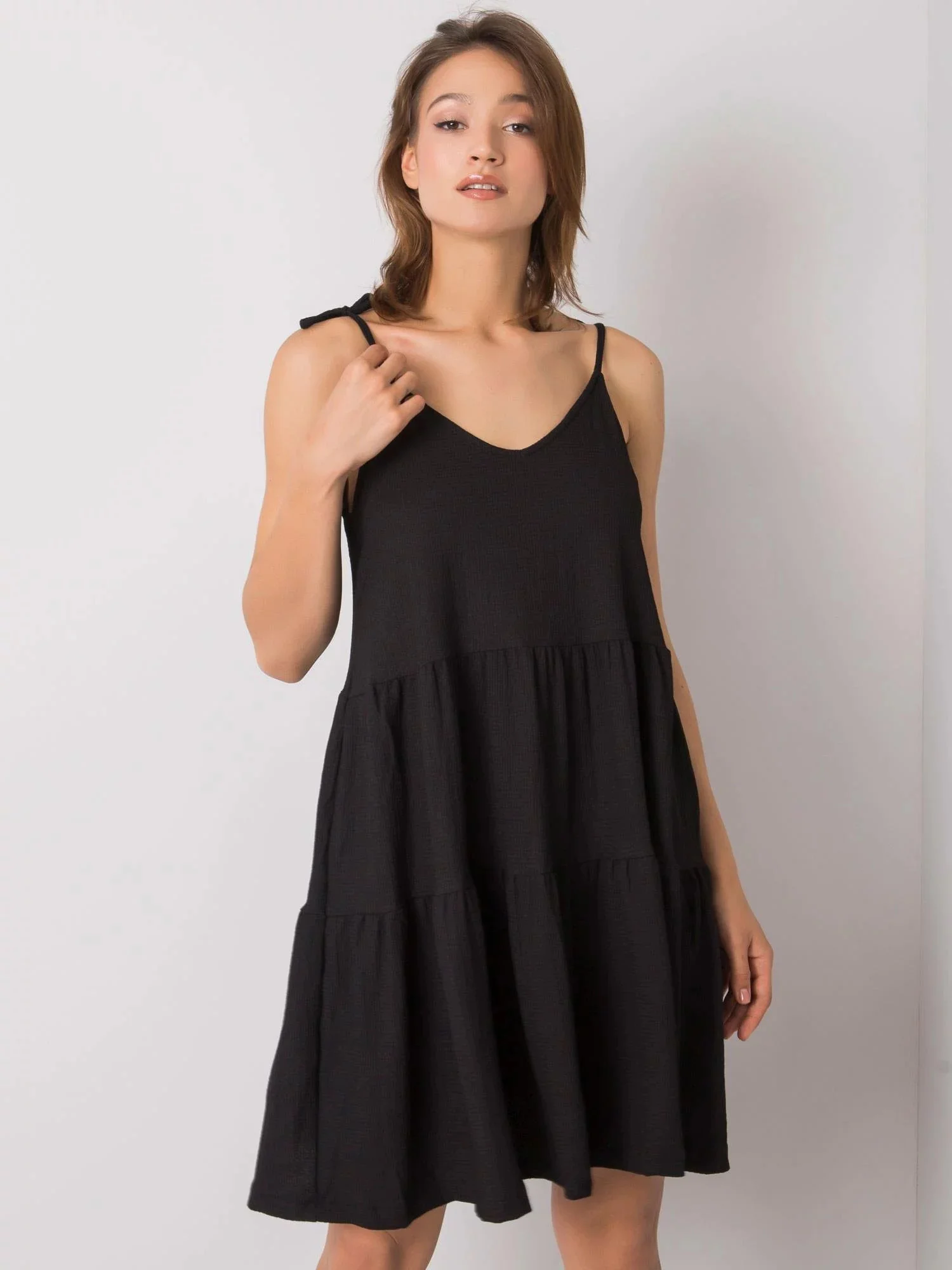 Produkt Dámské šaty s volánkem 2570 - RUE PARIS prodáváme v těchto velikostech: La barvách černá2016102950059