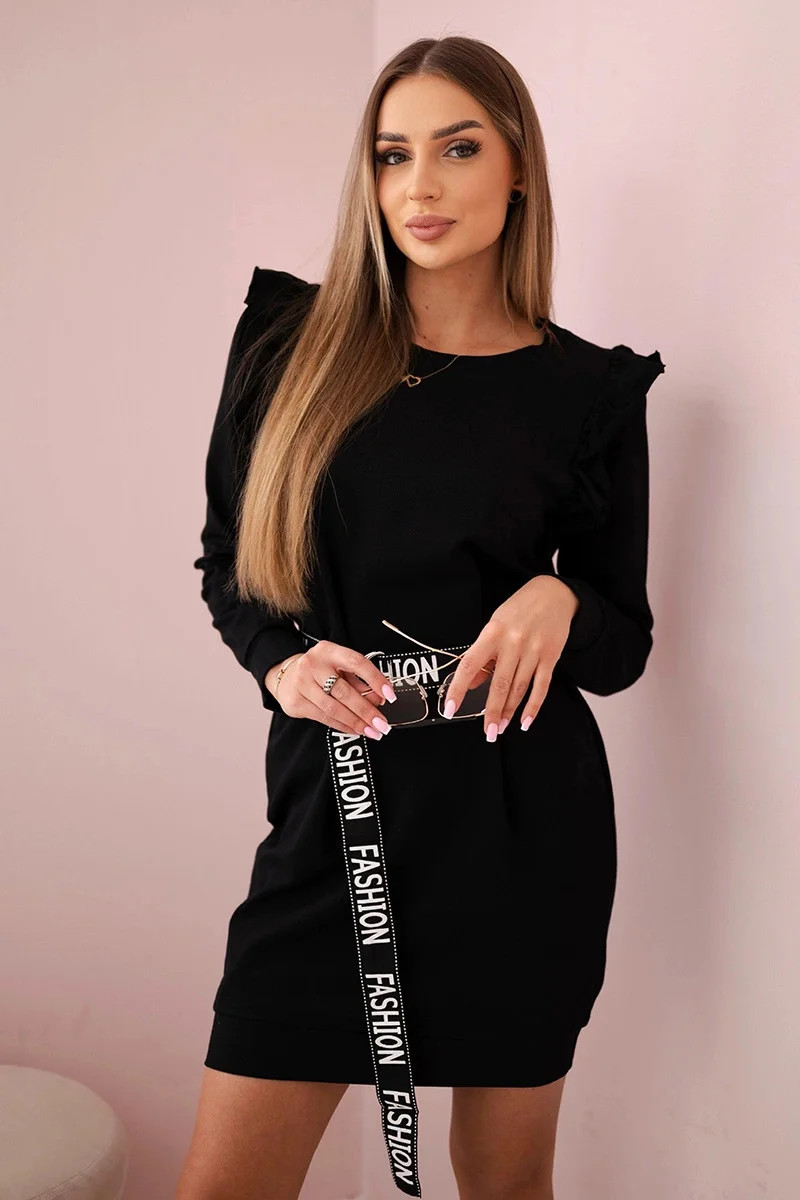 Dámské šaty s volánky a páskem černý
