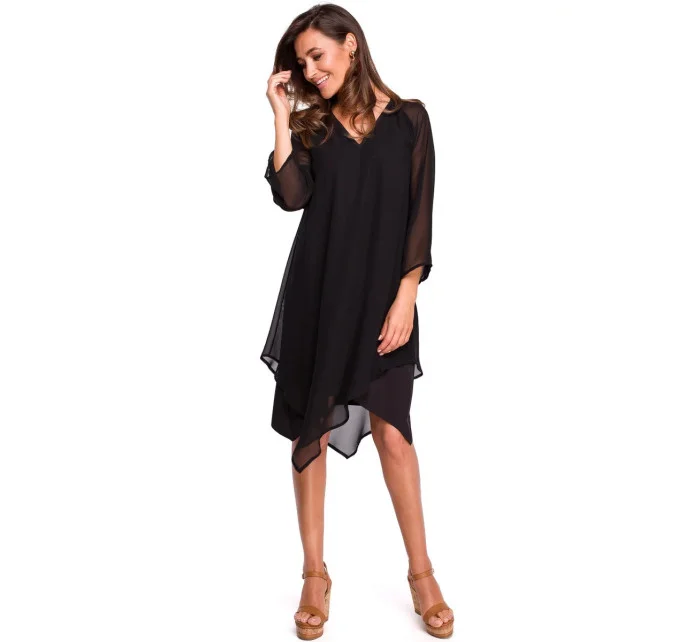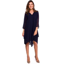Dámské šifonové šaty s asymetrickým lemem S159 - tmavě modré - Stylove