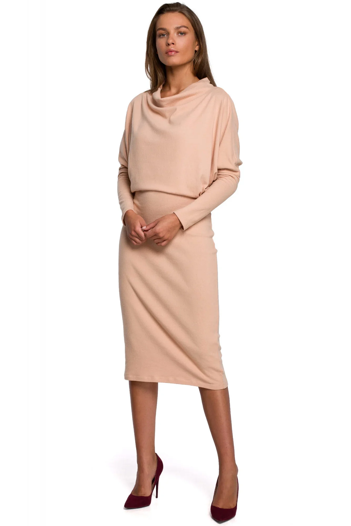 Moderní design s uvolněným řaseným vrškem a tužkovou sukní, střižený z měkkého úpletu na bázi bavlny, z nich dělá šaty snů, které budete ráda nosit od rána do večera.
