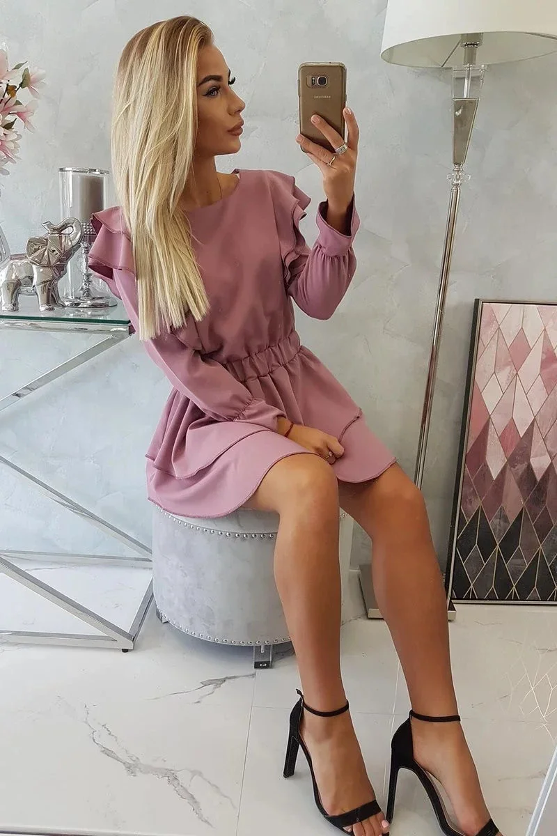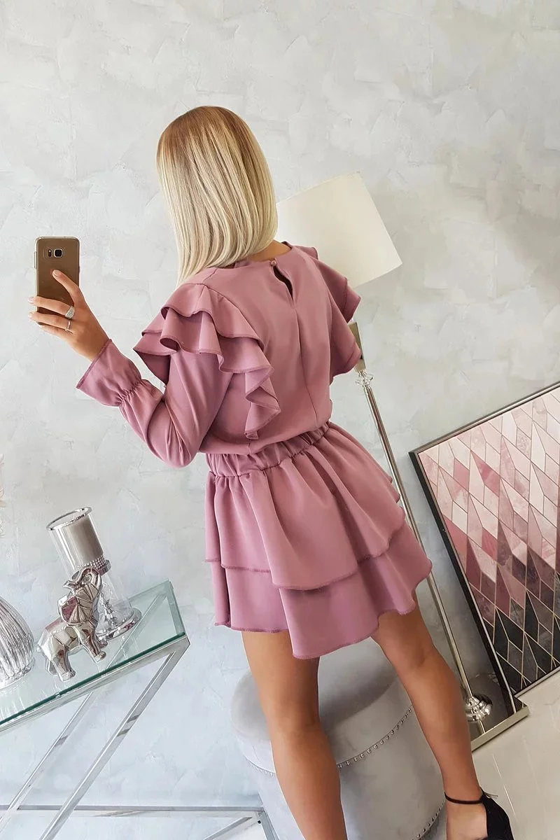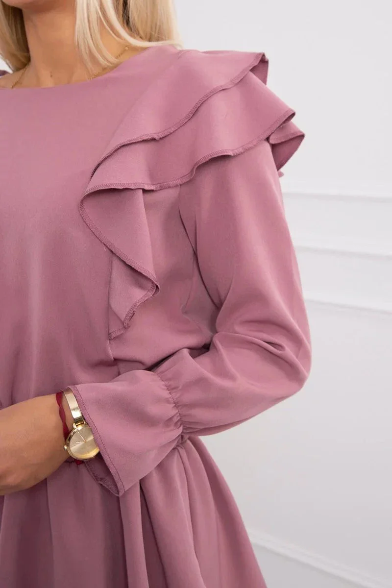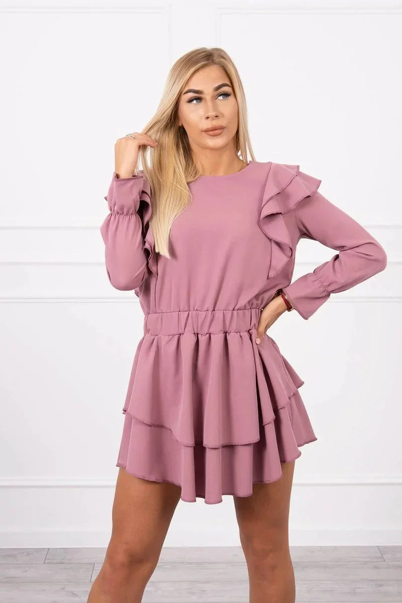 Dámské šaty se volány tmavě růžové model 20298086 - Kesi