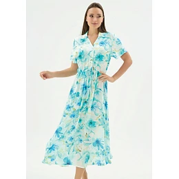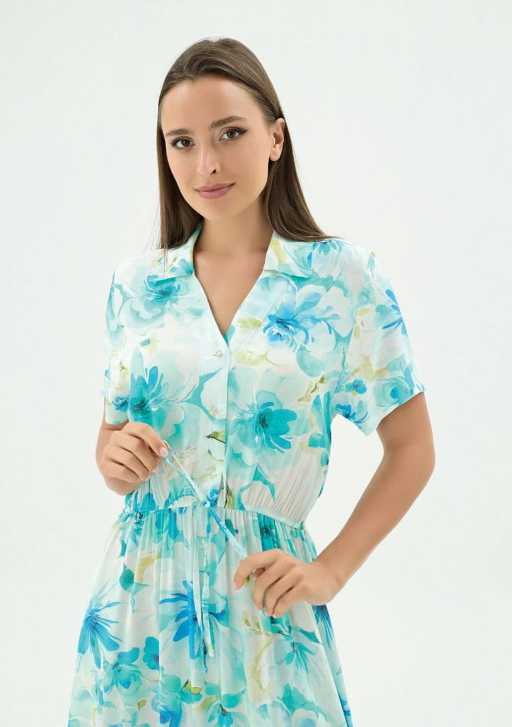 Dámské šaty značky Sevim zaujme elegantním a zároveň pohodlným provedením, které je ideální pro každodenní nošení. Model je navržen s jemným límečkem, který dodává šatům upravený a elegantní vzhled. V pase jsou lehce staženy do jemné gumy doplněny ozdobnou šňůrkou, díky čemuž si je snadno přizpůsobíte postavě a zvýrazní siluetu. Lehký a příjemný materiál zajišťuje komfort po celý den, zatímco praktický střih poskytuje dostatek volnosti pohybu.