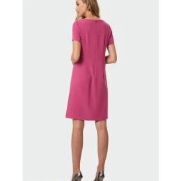 Dámské šaty ke kolenům, jednoduchého střihu, s krátkým rukávem, u krku kulatý výstřih.