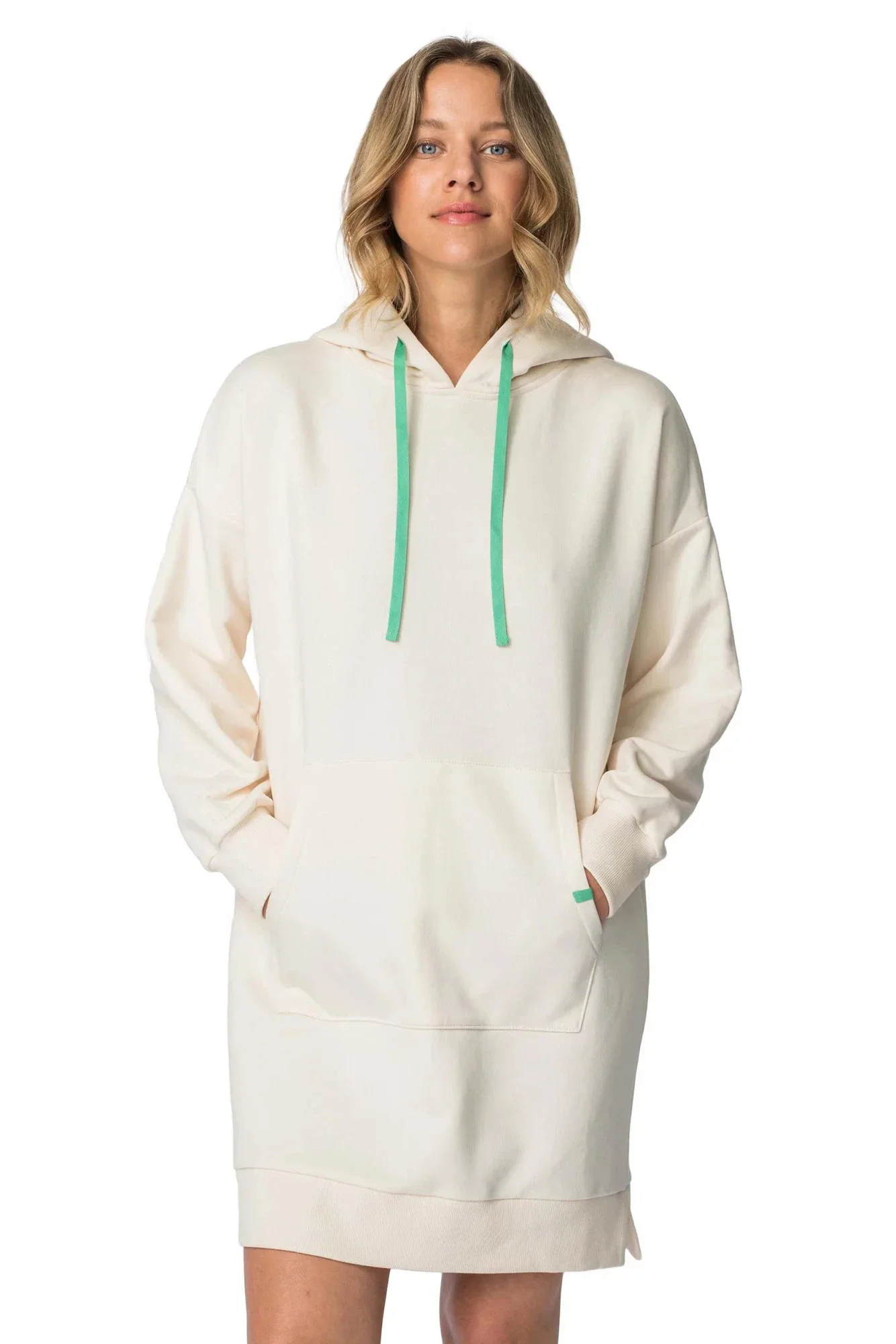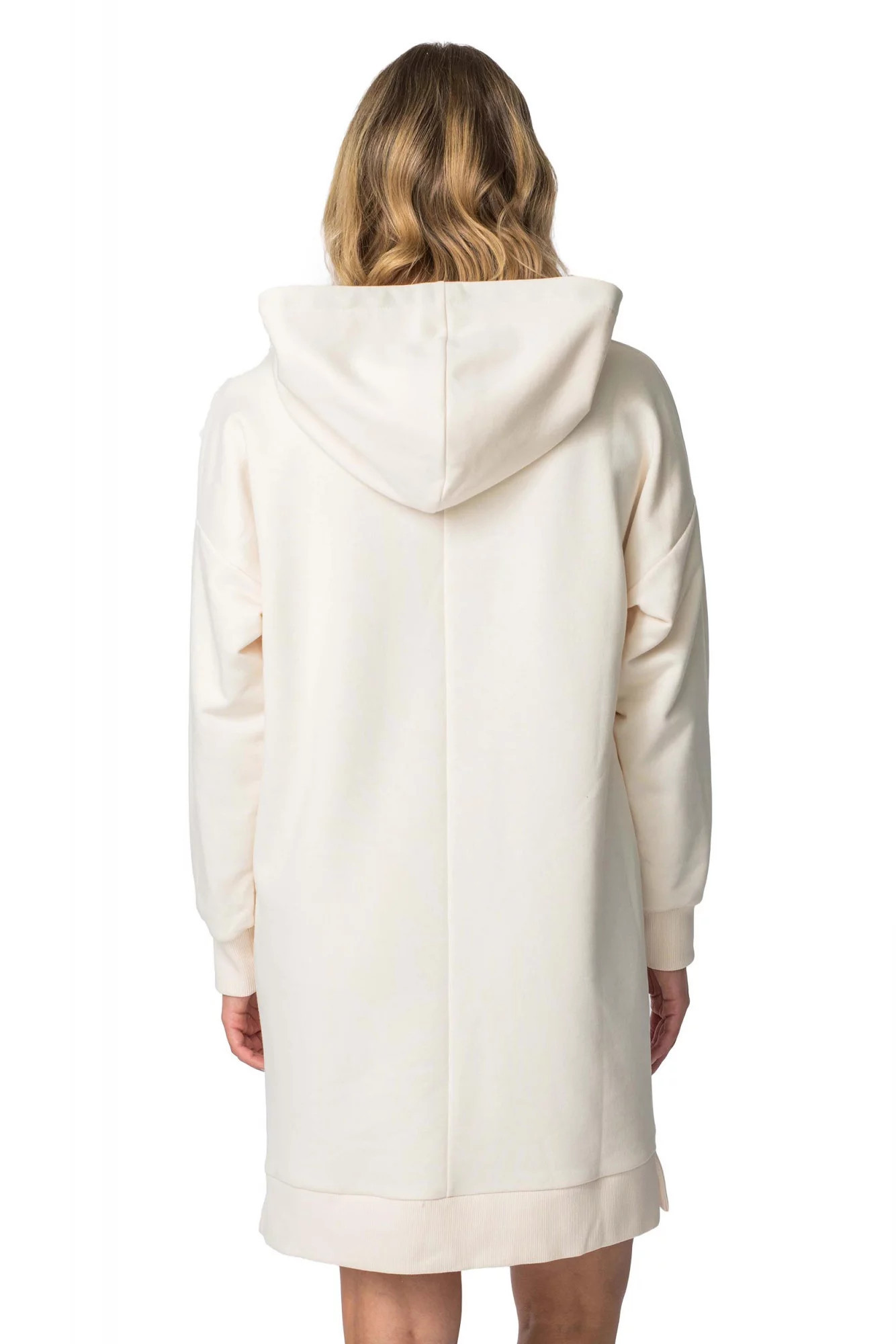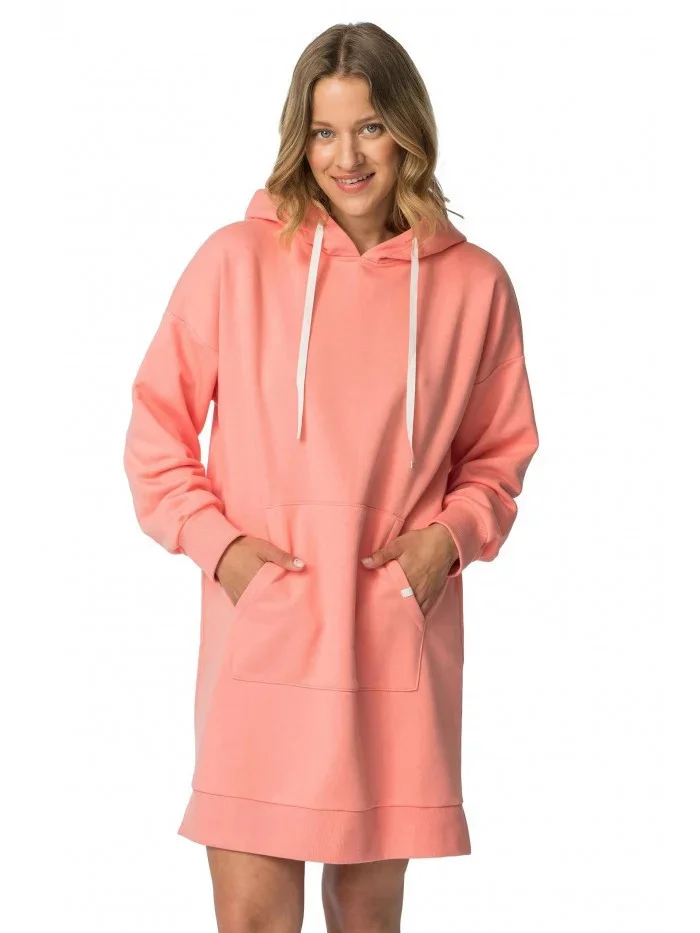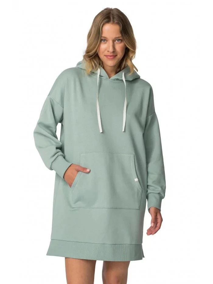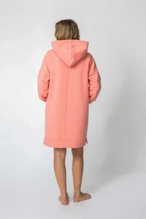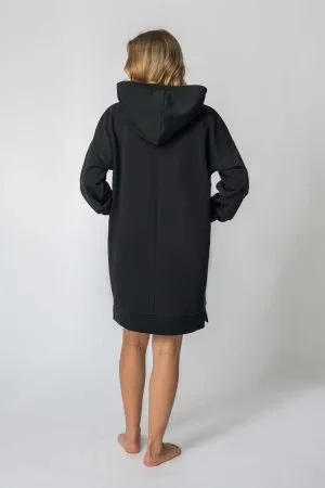 Tento oblíbený střih šatů s kapucí a klokaní kapsou volného střihu se hodí jak na doma, tak na ven.