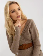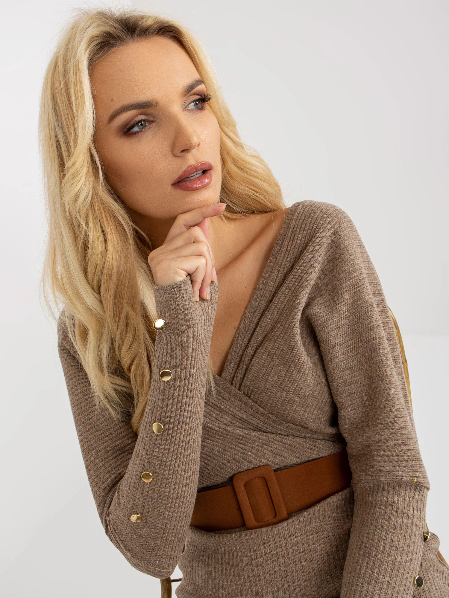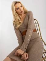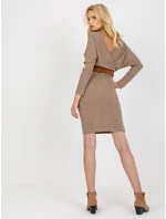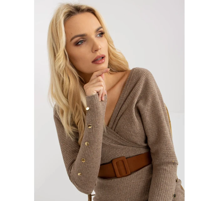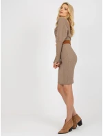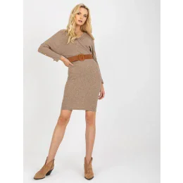Tmavě béžové úpletové šaty s páskem OCH BELLA .