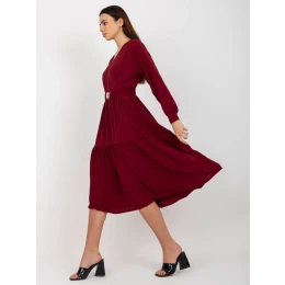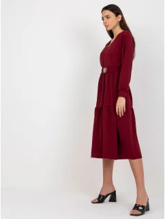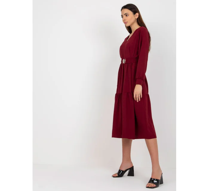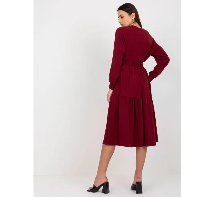 Bordó midi šaty s volánkem a výstřihem do V OCH BELLA .