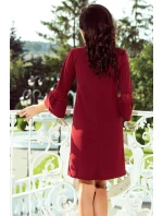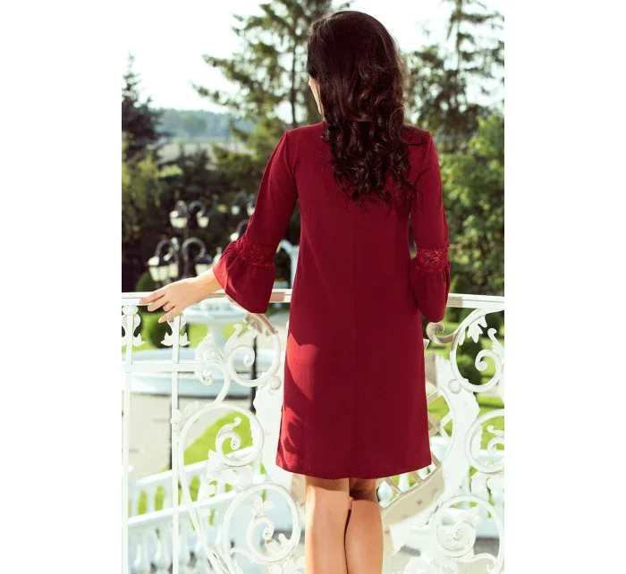 Dámské šaty v bordó barvě s krajkou na rukávech model 6318810 - numoco