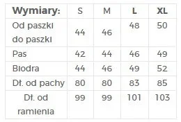 | Od podpaží k podpaží | 44 | 46 | 48 | 50 |