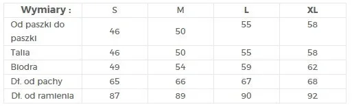 | Od podpaží k podpaží | 46 | 50 | 55 | 58 |
