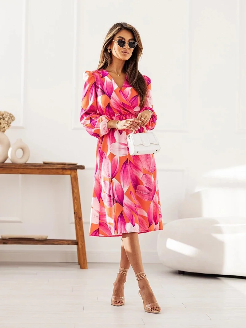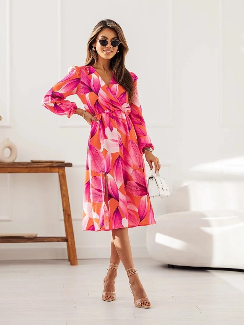 Dámské šaty ve fuchsijové barvě s přeloženým obálkovým výstřihem model 20070211 - Moon