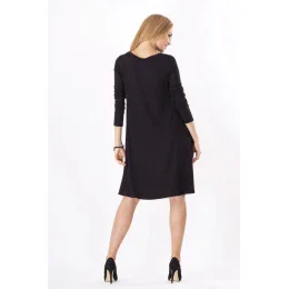 Dámské šaty volný střih 3/4 rukáv vhodné i pro těhotné středně dlouhé grafitové - Černá - BeYou