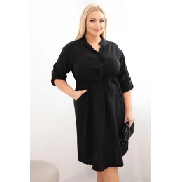 Dámské šaty z viskózy Plus Size s knoflíky a vázáním v pase černá